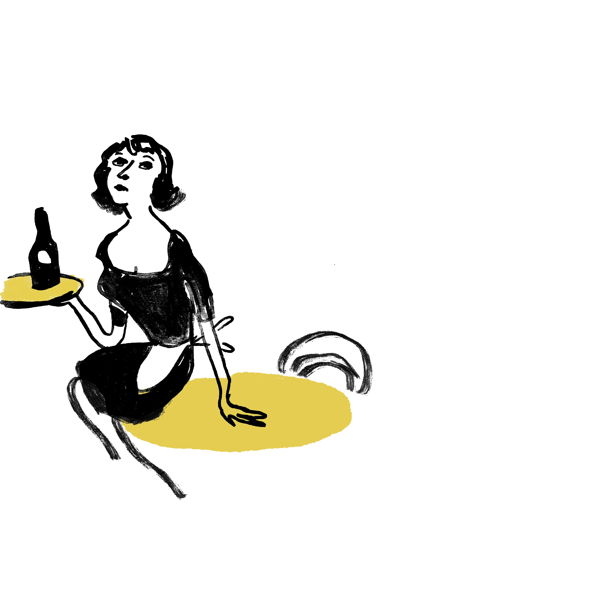 No one talks to you as an equal when you’re a waitress—instead they corner you in corridors, they glance at you sheepishly, they look after you with their money. Your presence can’t be helped, so your fame is turned against you and held for ransom. They expect you to keep their secrets in return.