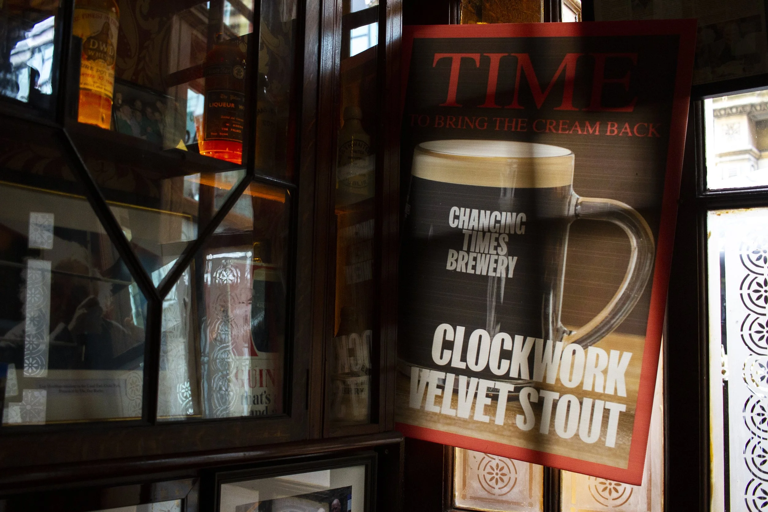 Part of the reason I decide to visit Dublin and speak to Willie and Ronan in person, instead of over the phone, is so I can see for myself who’s ordering what, and the presence Changing Times maintains in the pubs behind it. As Ronan and I chat, the pub opens and a regular comes in on the dot. He’s an aul’ fella who takes a seat at the bar with the paper. To make a sweeping set of generalisations, he looks like any man in my family who wouldn’t be found in a pub less traditional than The Swan, and who definitely wouldn’t stray from their usual. I expect him to order a Guinness, but instead he takes a Clockwork.