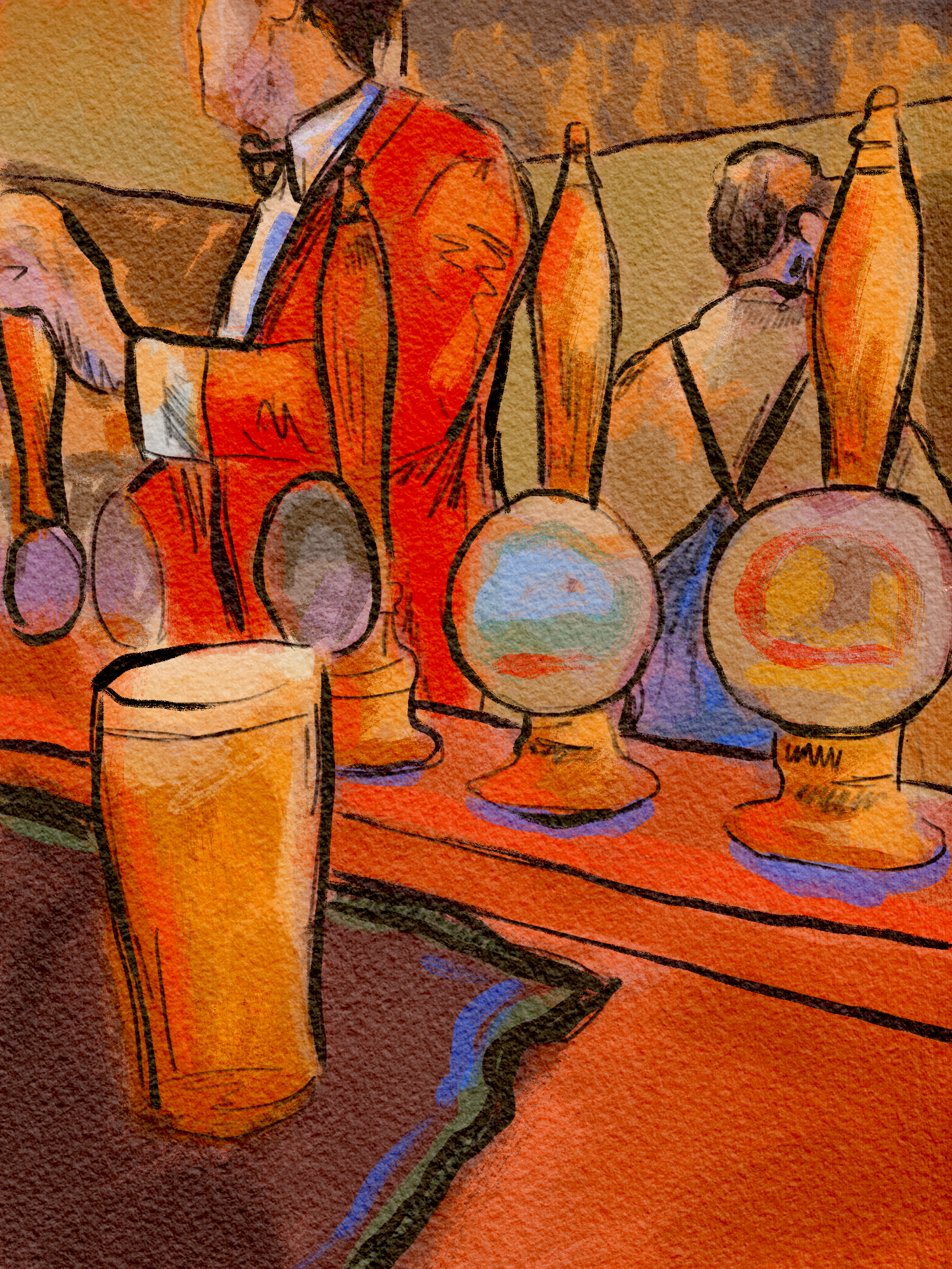 This latter flourish is awe-inspiring—and quite flattering, too, even for a group of aging dads sitting towards the back of the pub (of which I am one.) Most of the many other customers, though, are too youthful to need help. They’re part of a generation that doesn’t like pubs or drinking, or so we’re told—but there are enough of them here to bring that particular assumption into question.