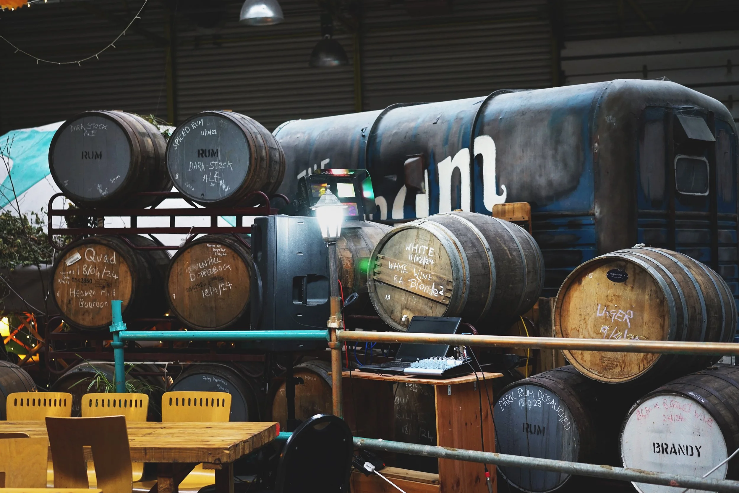 The Brew Room at Steam Machine could so easily be a cold and soulless place. Yes, it’s vast, industrial, and has high ceilings, plus the requisite stainless steel tanks and fermentation vessels. Yet somehow it still feels cosy. Tables and chairs are strewn across the room, homely lighting lends warmth, and ample heating is provided to combat those all-too-common cold North-Eastern days. Guests can sit among the beer-making equipment while they drink and chat, or retire to a yurt that has been erected inside the warehouse if they prefer a more relaxing environment.